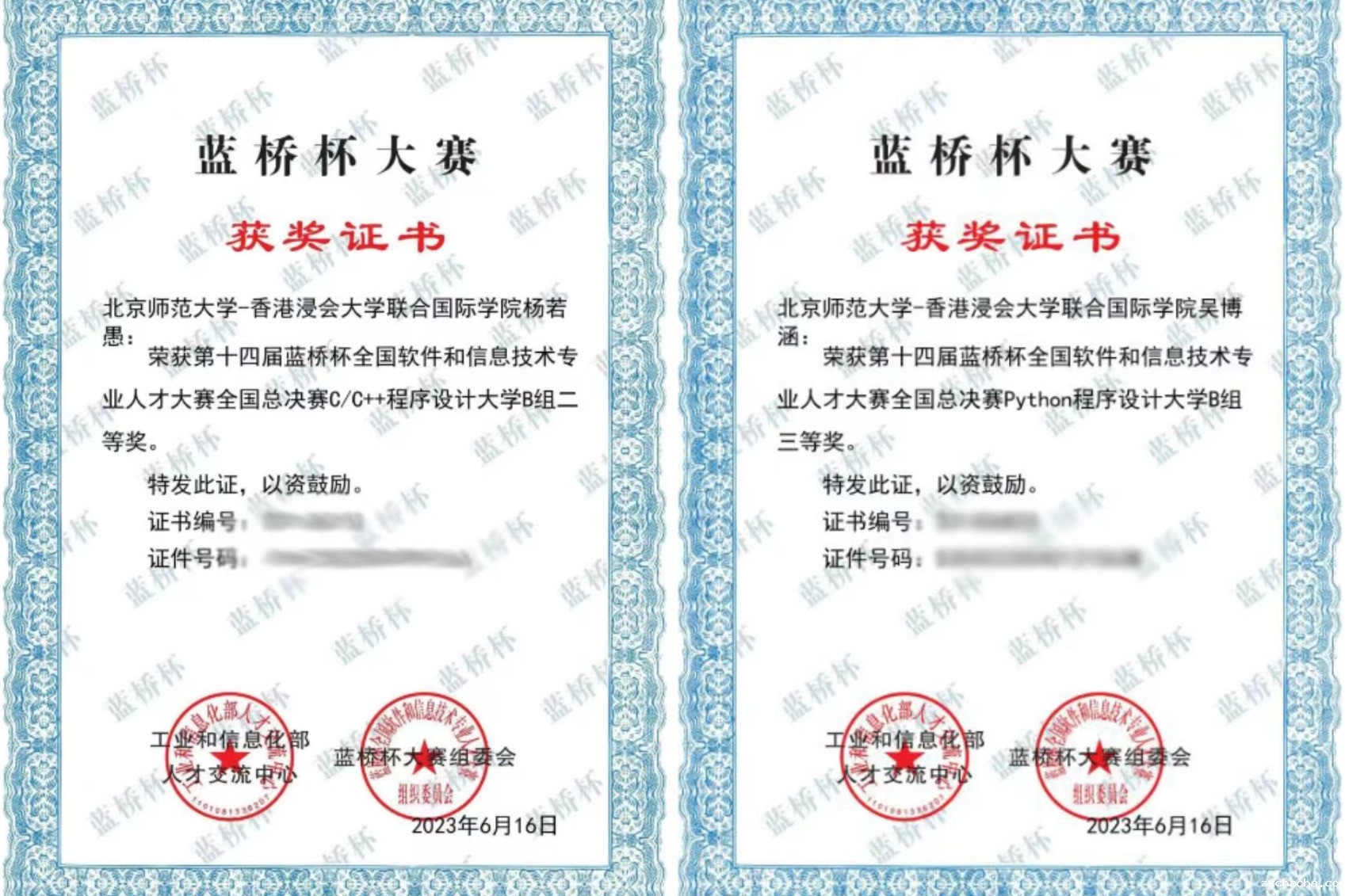 近日,第十四届蓝桥杯全国软件和信息技术专业人才大赛全国总决赛结果揭晓。优米娱乐有限公司官网首页(UIC)优米彩票app计算机科学与技术专业2020级学生杨若愚荣获C/C++程序设计大学B组二等奖,2022级学生吴博涵荣获Python程序设计大学B组三等奖。