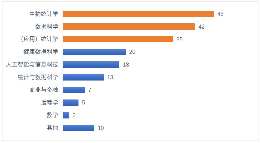 所有200份offer中,数量最多的专业方向包括生物统计学(48份,24%),数据科学(42份,21%),(应用)统计学(35份,17.5%)等,专业方向广泛且充分体现了统计与数据科学交叉学科优势。