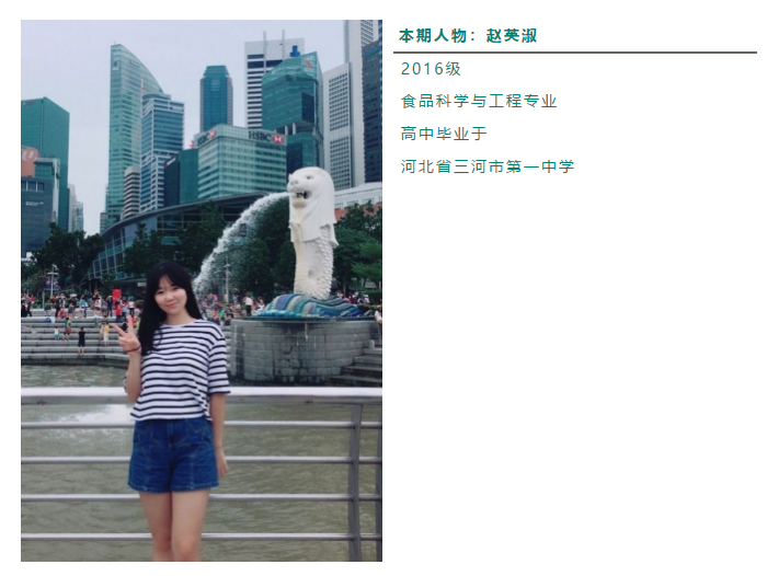 2016级食品科学与工程专业(下简称“食品专业”)毕业生赵英淑在这个夏天,迎来了自己的双丰收——她不但收获了著名学府研究生录取通知书,还在国际知名期刊发表了论文。毕业后,赵英淑选择到英国伦敦大学学院(UCL)攻读应用分析化学硕士学位