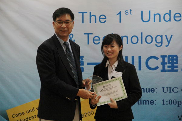 钟森文教授向获得最佳海报奖的郑钟黛西同学颁奖