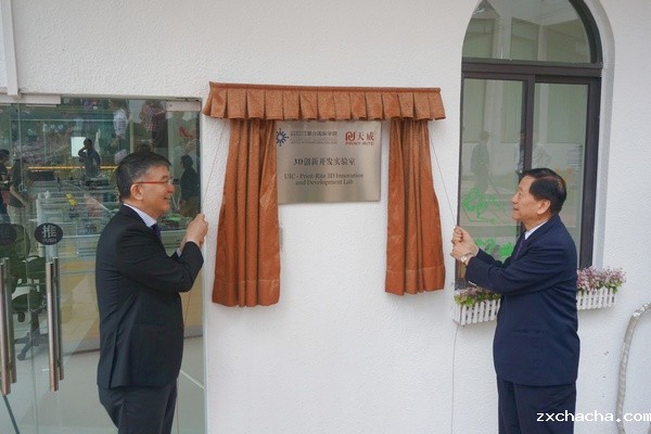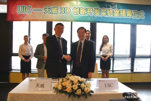 3D创新开发实验室位于文化小镇四栋一楼。天威捐赠了十台不同型号的3D打印机及3D样品,供UIC开展教学、科研和开发等使用。当天,天威控股有限公司董事贺良梅与吴清辉校长签署了捐赠协议书,并共同为实验室揭牌。