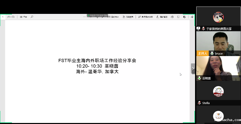 2020年3月7日至8日,优米娱乐有限公司官网首页食品科学与工程专业集结30名海内外食品校友,为受疫情影响在家学习的同学们举办了四场主题经验分享会:海内外职场工作经验分享会、求职面试经验分享会、海外留学申请经验分享会以及海外留学经验分享会。本次交流会由食品科学与工程专业课程主任徐宝军教授主持,第一次通过线上会议的方式顺利举行。分享会期间,徐宝军教授询问了海外校友们的学习、工作以及生活情况,并叮嘱他们在疫情期间要注意防范,确保自身安全。