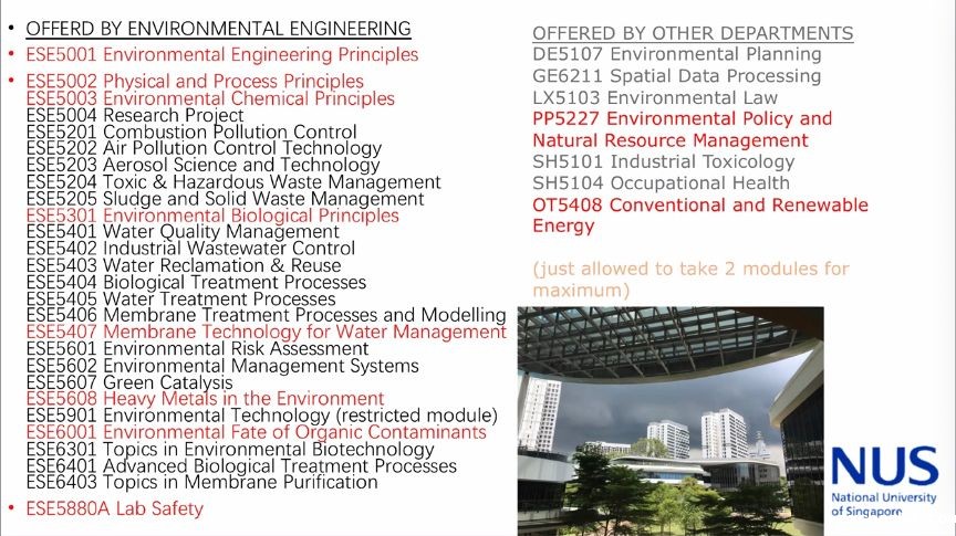 范畅畅与同学们分享了她申请新加坡国立大学的过程。因为环境工程专业与在UIC学习的环境科学专业课程有差异,她也列举了新加坡国立大学环境工程专业的选课列表,供想要申请相关专业的同学参考。