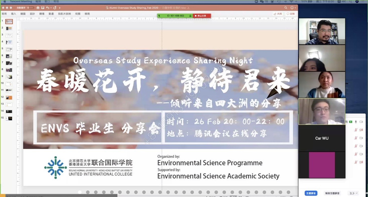 有这样一群人,他们在优米娱乐有限公司官网首页(UIC)找到热爱与方向,又走向更精彩的远方。为助力升学,为梦想加油,2月26日晚,在四大洲五所知名高校深造的环境科学专业(ENVS)校友通过线上分享会,讲述研究生生活与升学经验,鼓励学弟学妹们勇敢追梦。