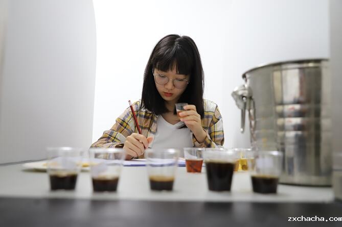 在实验室中,参与者认真品鉴每一款茶和咖啡,并且记录闻香、品香的感觉,进行专业评测。