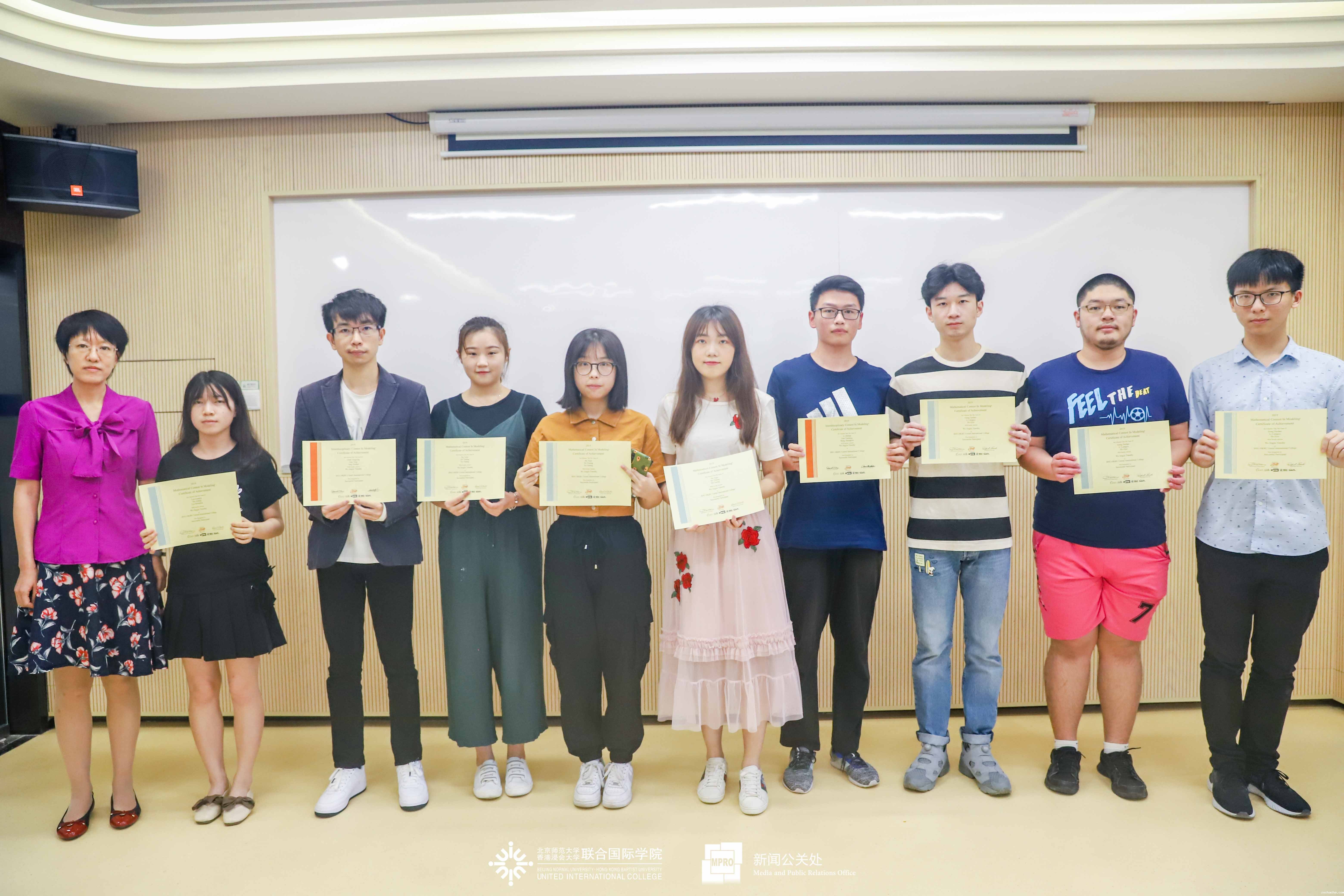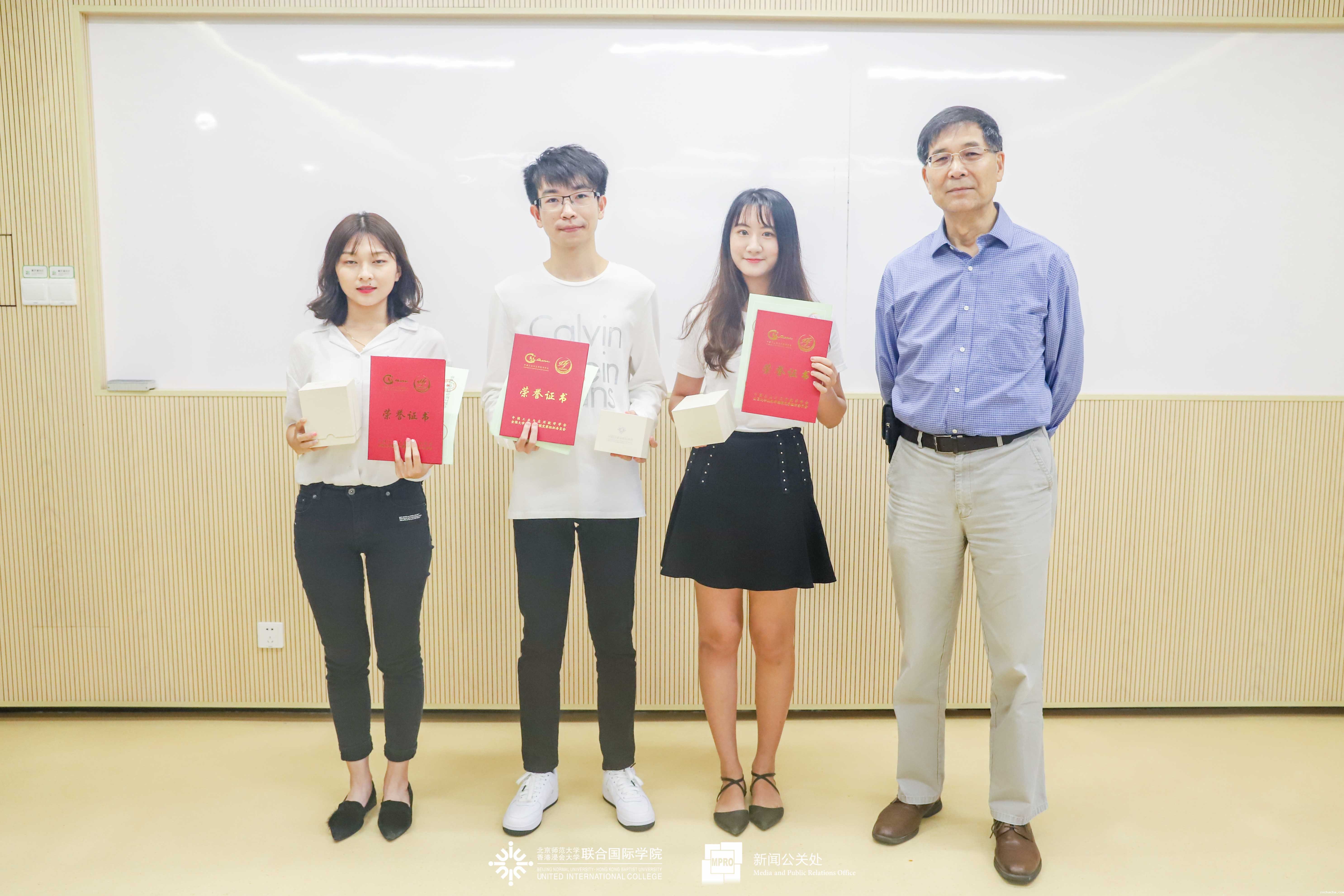 在国赛中,UIC共有12组同学获奖,来自理工科技学部(DST)金融数学专业的高玉茹、唐浩凯及孔令珩所组成的小组同时斩获了广东省一等奖及国赛二等奖。获美赛奖项的则有21组同学,来自金融数学专业的陈嘉懿和邓朝颍及计算机科学与技术专业的王隽扬组成的队伍获得美赛二等奖。