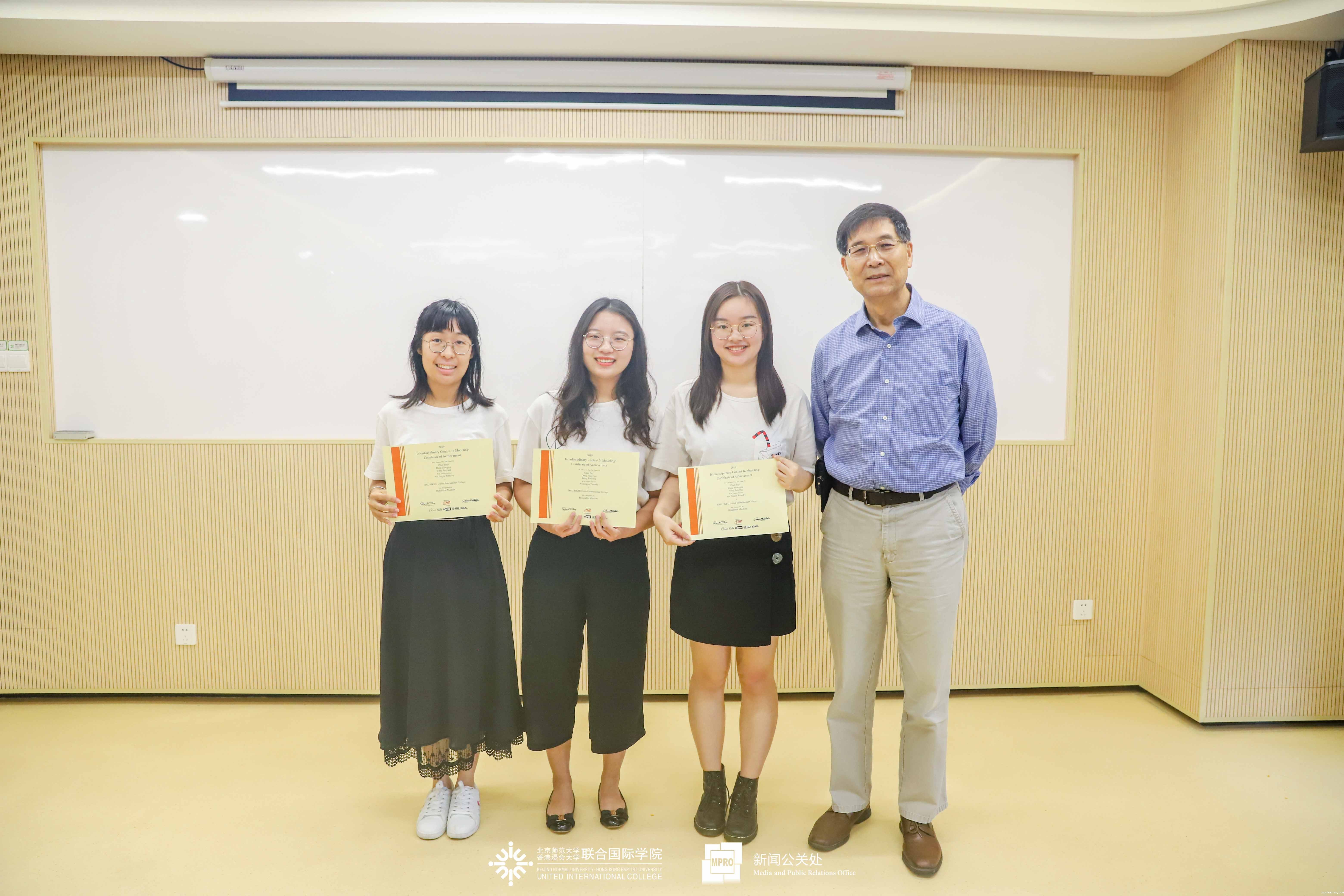 统计学专业曾镜涛教授为获美赛国际三等奖的小组成员颁奖