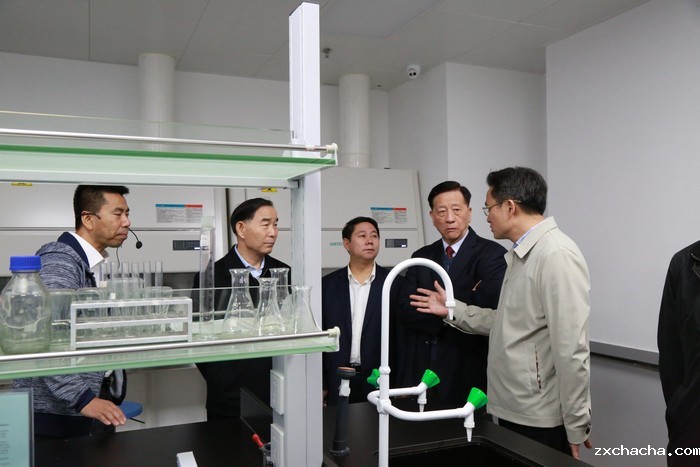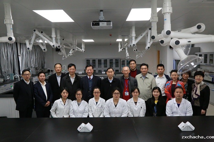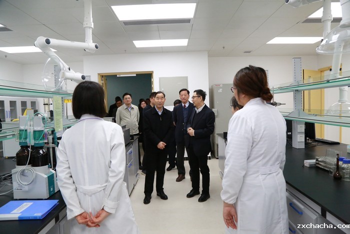 朱保成一行在吴清辉校长、雷波的带领下参观了食品科学与工程的食品加工实验室、食品科学研究实验室等教学实验室,健康食品开发实验室等研究实验室及检测中心。