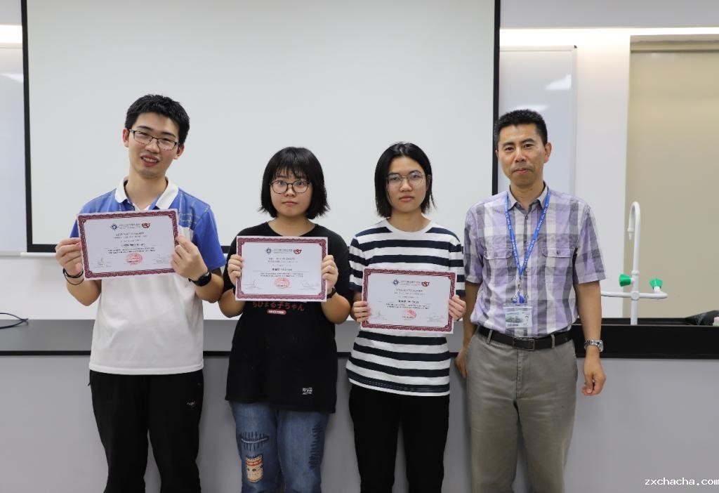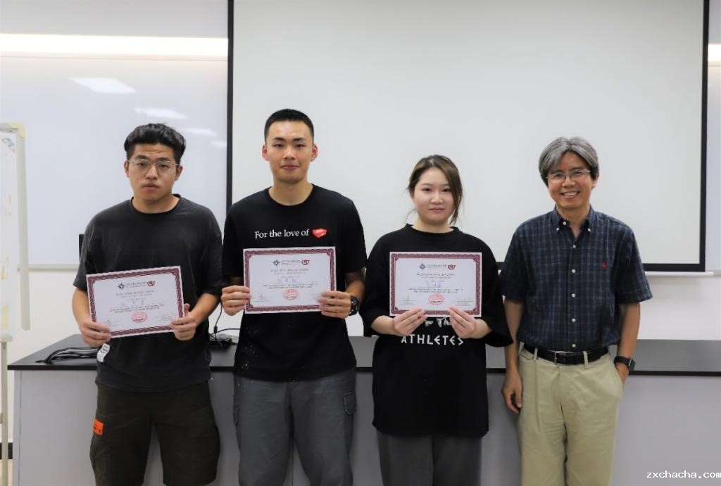 徐宝军教授(右一)为最佳海报奖“一口虾肚”制作团队颁奖