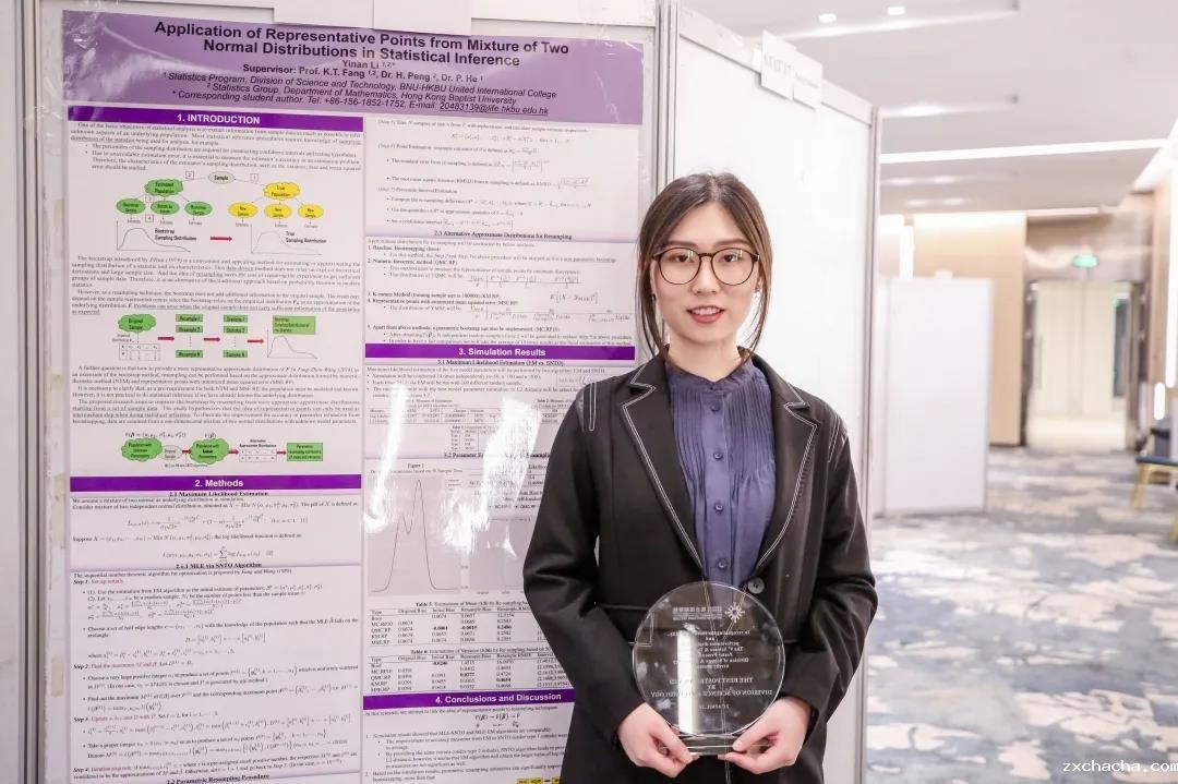 UIC概率论与数理统计专业博士一年级学生李易楠获得了“最佳学部海报奖”。她的研究主题是“混合正态分布代表点在统计推断中的应用”。李易楠说代表点在统计推断中的应用是她未来的研究方向。本次参展的研究是她的一些初步成果,未来,她将基于目前的统计模拟结果开展进一步的研究。
