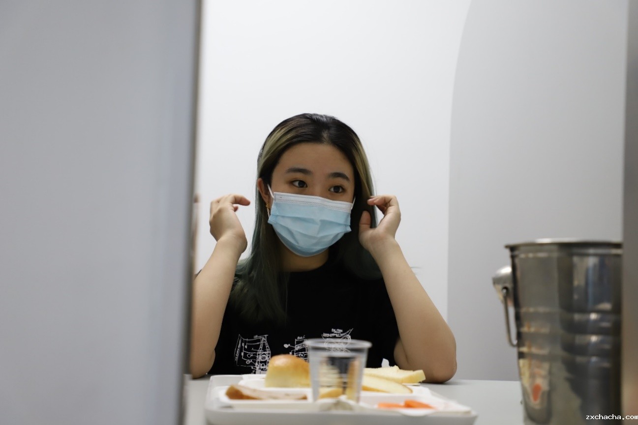 学生志愿者正在T8-515实验室厨房进行产品准备工作