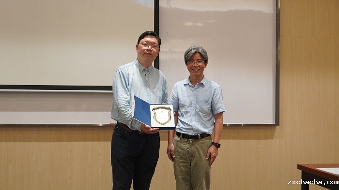 副校长(学术)黄华雄教授(右)为廖世俊教授赠送纪念品