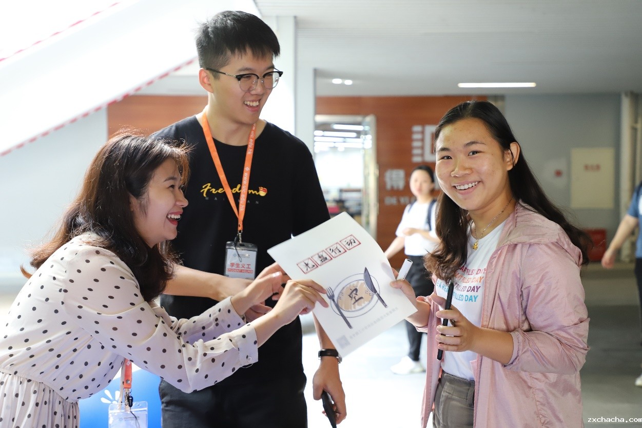 志愿者向当天“光盘”的学生发放纪念文件夹
