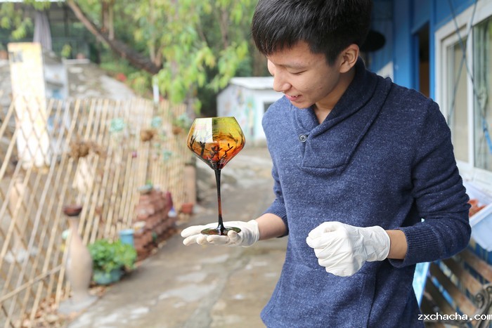 蓝宇鹏在UIC玻璃手工艺课和高尔夫球课上