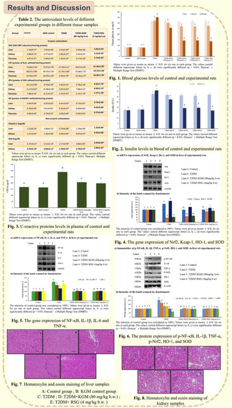 2016级食品科学与工程专业赵英淑的研究课题是《魔芋葡甘露聚糖(KGM)通过调节氧化应激和炎症发挥抗糖尿病作用》。赵英淑通过试验和研究发现,魔芋葡甘露聚糖对2型糖尿病大鼠具有抗糖尿病作用。用魔芋葡甘露聚糖进行治疗可显著降低血浆葡萄糖和胰岛素水平,减少氧化应激和炎症反应,积极调节Nrf2和NF-kB因子的通路,并有助于保护组织结构。