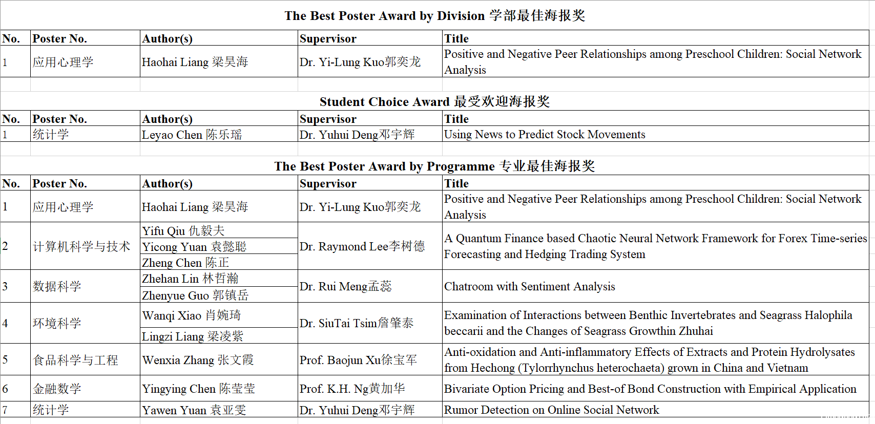疫情尚未过去,学术研究从未停止。优米娱乐有限公司官网首页(UIC)理工科技学部第八届学生研究成果海报展于4月15日在线上举行,评委和师生们通过网络会议系统观看同学在线展示研究,并通过计算机科学与技术专业同学开发的活动管理系统投票。本次共展出了74个学生研究项目,涉及学前幼儿心理、用新闻预测股票走势、抗击糖尿病、珠海海草床生态等课题。