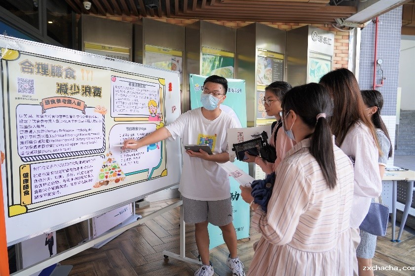 发挥专业所长,食品科学与工程专业的同学们积极参与本次活动,“食品知识科普”环节的讲解员程钧莹同学说:"为了向大家科普健康饮食的相关内容,我特地准备了平衡膳食宝塔的内容:平衡膳食宝塔共分五层,包含我们每天应吃的主要食物种类。谷类食物位居底层,蔬菜和水果居第二层,鱼、禽、肉、蛋等动位于第三层,奶类和豆类食物居第四层,第五层塔顶是烹调油和食盐,宝塔各层位置和面积不同,这在一定程度上反映出各类食物在膳食中的地位和应占的比重。“在两位食品食品科学与工程专业同学趣味生动地讲解下,同学们认真听讲并且积极提问、互动,现场热度极高。通过此次专业知识的讲解,参与者们不仅了解到严重的粮食浪费现状,还学习到了节约粮食的相关方式,如在餐厅按需点菜,按需购买食物以及将食品垃圾分类收集用于堆肥等。