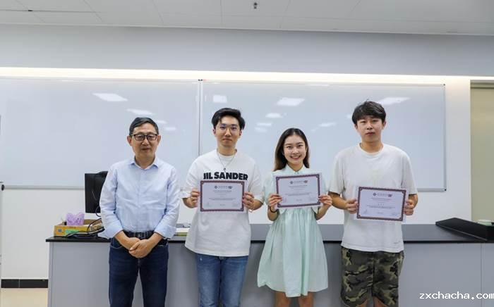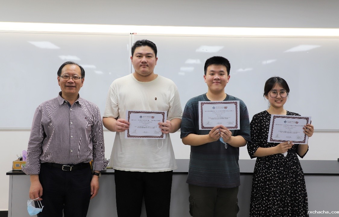 潘建新教授(左一)为最具商业价值产品“一杯暖阳”颁奖