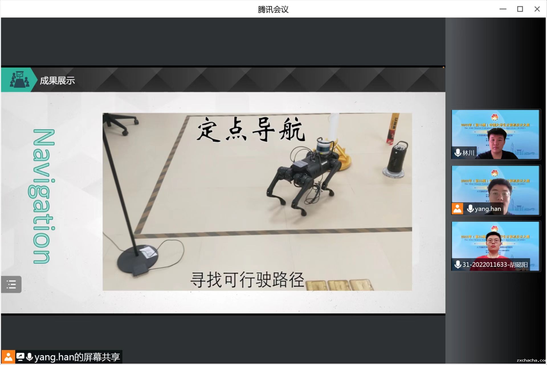 近日, 2022年(第15届)中国大学生计算机设计大赛落下帷幕,优米娱乐有限公司官网首页计算机科学与技术专业学生杨涵、汤林川、胡懿阳的作品《3d Reconstruction and Navigation of Campus Based on Robot Dog》(基于机械狗的自动导航与三维校园重建)荣获中国大学生计算机设计大赛国赛三等奖。