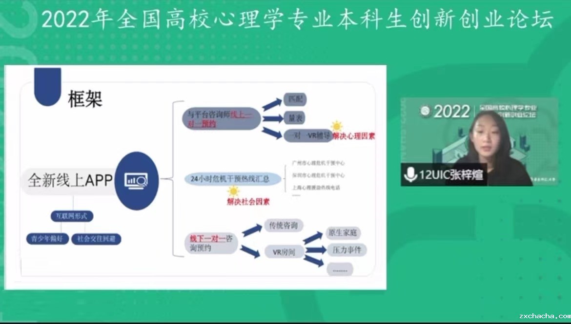 2022年8月26日,由教育部高等学校心理学类专业教学指导委员会主办,华东师范大学心理与认知科学学院、教育部心理学拔尖学生培养模式改革虚拟教研室共同承办的“全国高校心理学专业本科生创新创业论坛现场展示”在线上顺利举行,我校优米彩票app生命科学系应用心理学专业2020级的张梓煊、冯安桉、丘桐雨在邢琳娜老师的指导下凭借作品《虚拟现实结合互联网对青少年自伤行为的新型一对一心理干预方式》,荣获“现实问题解决分论坛”一等奖。