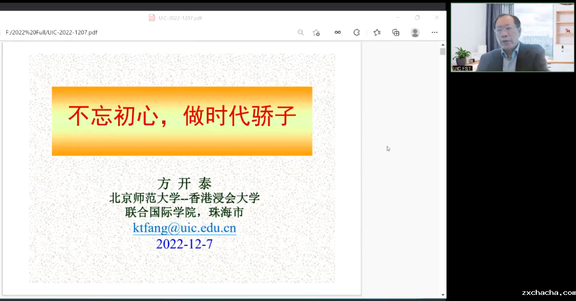 新架构下,统计与数据科学系融合了统计学与数据科学两大专业学科。11月中旬,随着73名大一学生通过专业分流选择进入数据科学专业,2022级统计与数据科学系全体新生也最终集结完毕。为了欢迎各位新生的到来并介绍与指引接下来四年的学习与生活,12月7日,统计与数据科学系邀请到统计学专业创始课程主任、著名统计学家方开泰教授给全体大一新生带来“不忘初心,做时代骄子”的线上主题讲座。