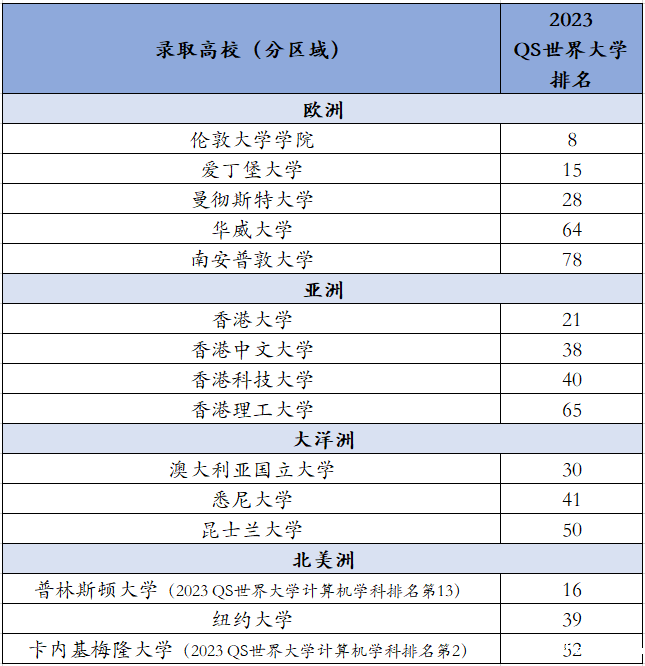 据不完整统计,各地区拿到数量较多且2023 QS世界大学排名靠前的offer
