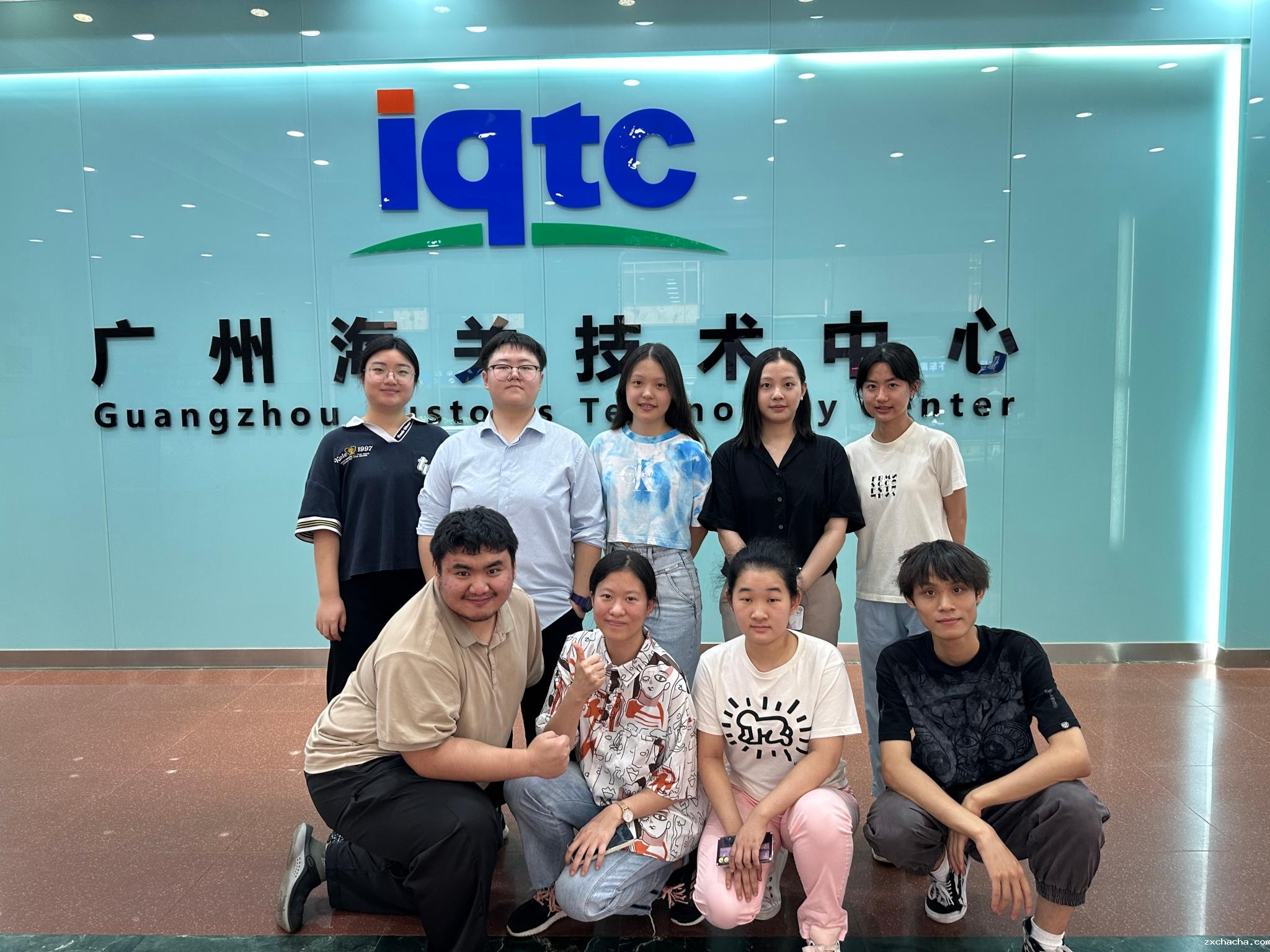 严宇昂(前排左一)与实习生在广州海关技术中心实习