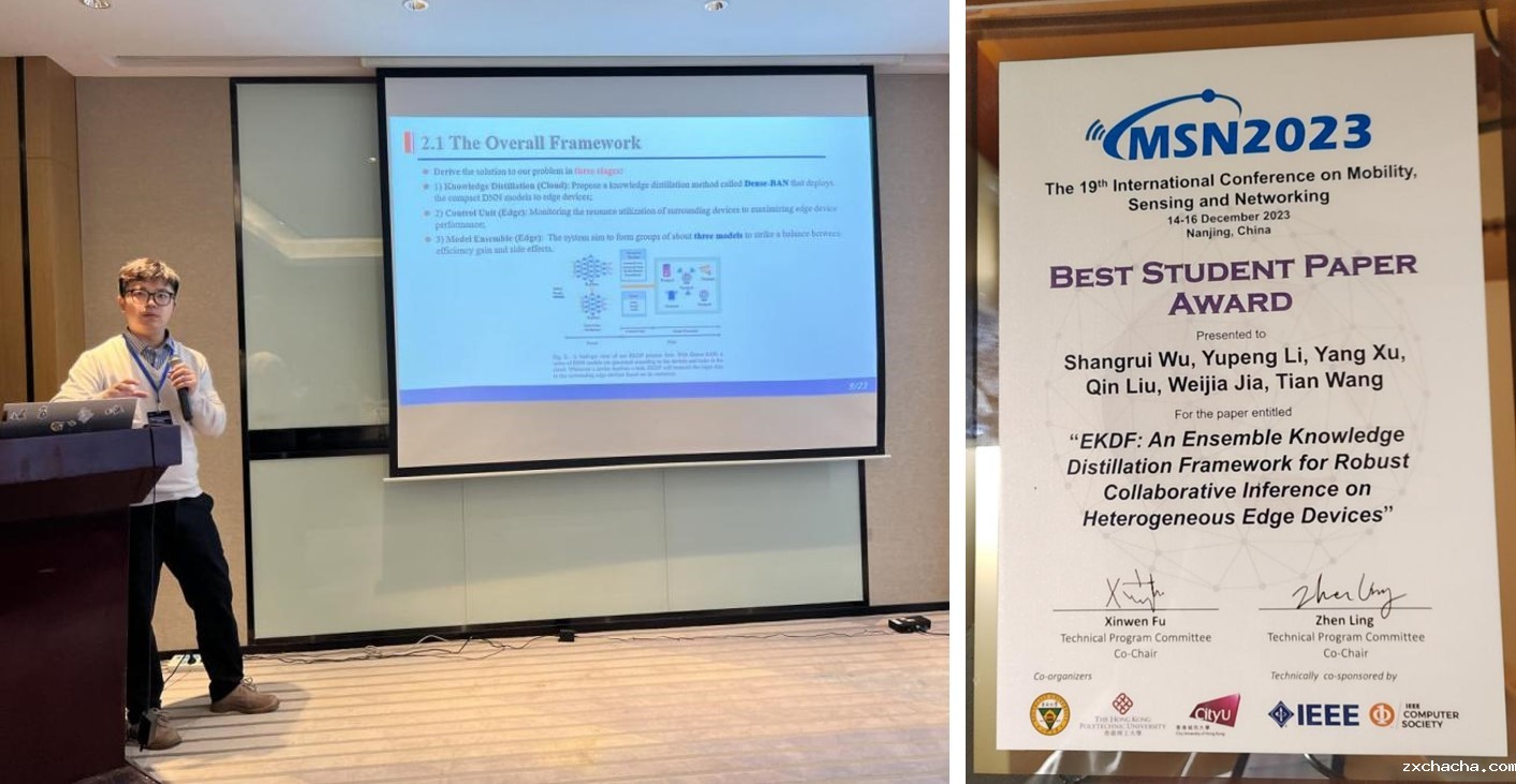 2023年12月14日,The 19th International Conference on Mobility, Sensing and Networking(MSN 2023)在南京召开,UIC优米彩票app计算机科学系博士生吴尚睿荣获MSN 2023 Best Student Paper Award,指导老师王田教授,该奖项为此次大会唯一最佳学生论文奖。吴尚睿是UIC计算机科学系2022级博士生,研究领域是协作边缘智能。