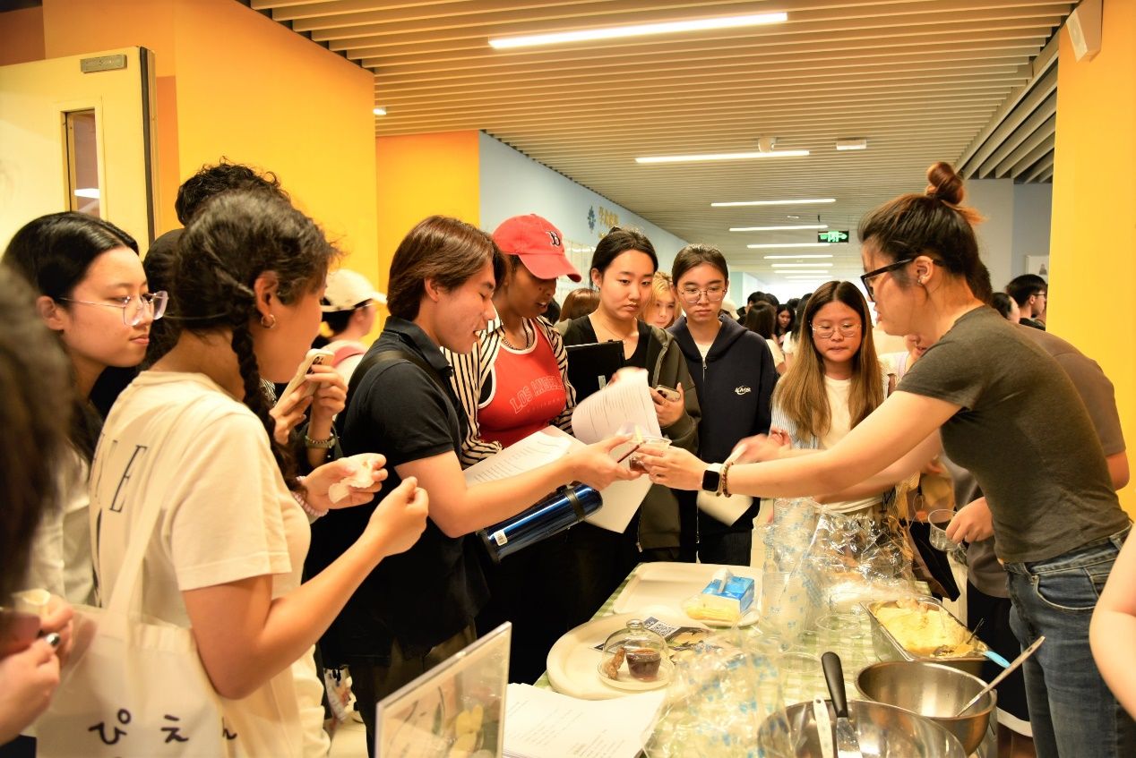 随着活动的正式启动,现场气氛迅速升温。各摊位前人头攒动,不少师生驻足观看、拍照留念,积极参与品鉴与交流。现场展示的七款创意美食吸引了大量关注,参与者纷纷表达了对产品风味与创意的高度认可。