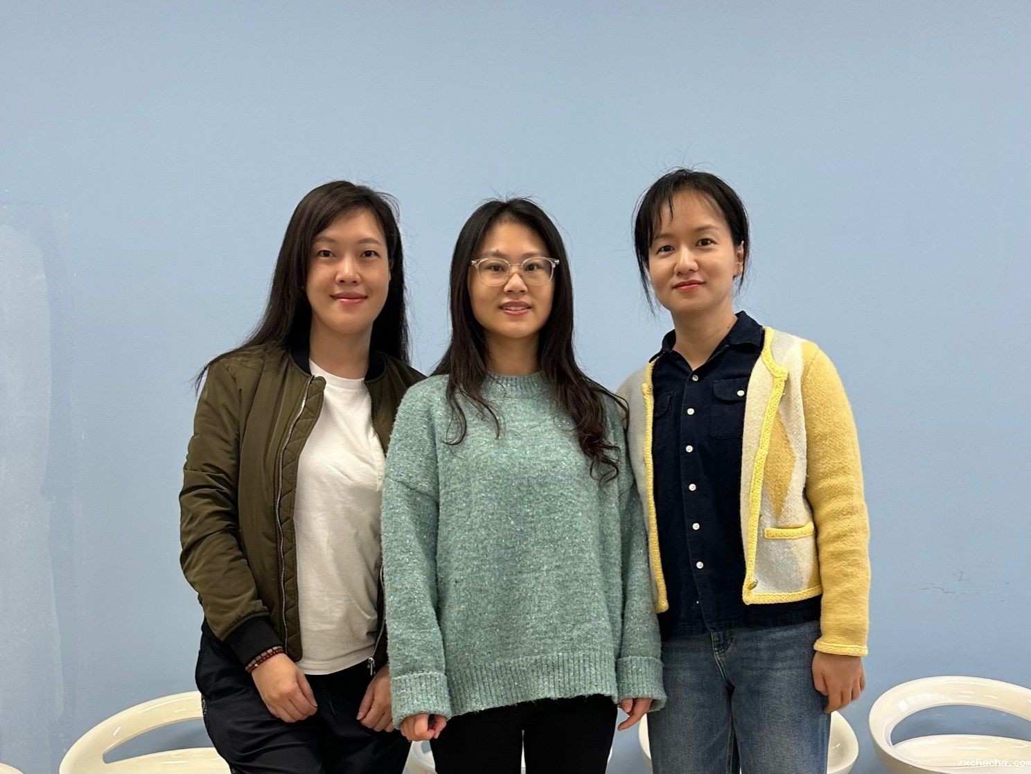 获奖教师邢琳娜(左)与团队成员杨睿昕(中)、杨珍芝(右)合影