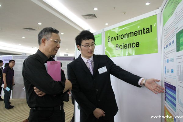 郑征宇同学向环境科学专业主任阮华达教授介绍他的研究过程