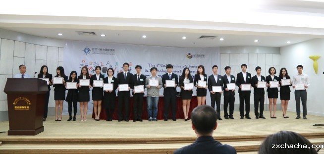 协理副校长关利平教授、教务长张根发教授为获得本届海报展的最佳海报奖郑景杭颁奖