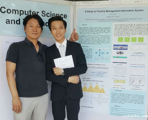 蓝宇鹏同学和FYP导师郑宣弼博士在他的作品前合照