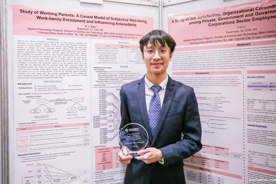2017级应用心理学专业的冼梓敬的课题“双职工研究:由主观幸福感,工作-家庭促进与其前因变量组成的因果模型”获得了“最受欢迎海报奖”。他运用了结构方程模型(SEM)来分析主观幸福感、工作-家庭促进与其共同前因变量之间的因果关系。该研究中结构方程模型的成功运用,证实了变量因素之间的因果关系,同时也为组织管理和未来的研究提供了实用的指导。