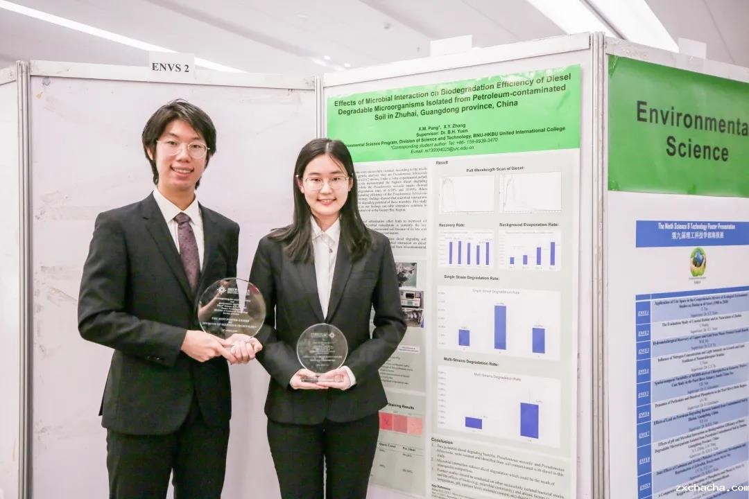 2017级环境科学专业的庞星明和张欣雨的研究课题“微生物相互作用对广东省珠海市石油污染土壤中柴油可降解微生物的生物降解效率的影响”获得了“最佳学部海报奖”和“最佳专业海报奖”。