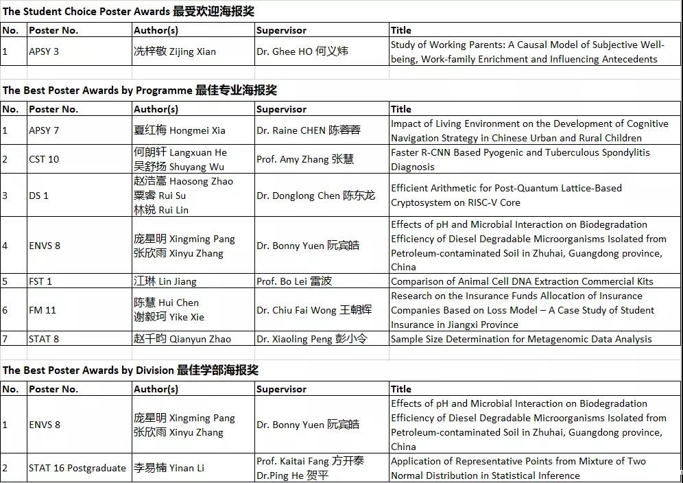 本届海报展设有学部“最佳学部海报奖”(本科和研究生)、“最受欢迎海报奖”和“最佳专业海报奖”等奖项,“Excellence in E-learning Awards by DST ”也在活动后颁发。