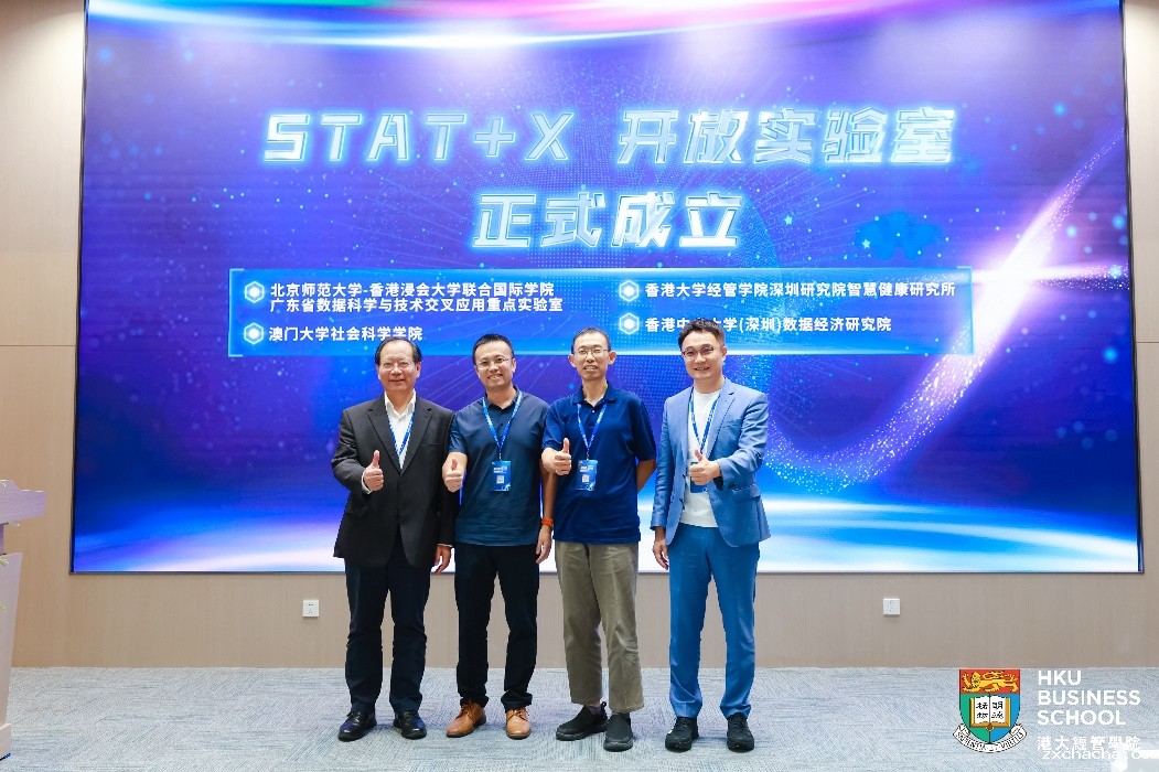 STAT+X开放实验室于2023年9月16日在香港大学经管学院深圳校区正式成立,由北京师范大学-香港浸会大学联合国际学院广东省数据科学与技术交叉应用重点实验室、香港大学经管学院深圳研究院智慧健康研究所、香港中文大学(深圳)数据经济研究院及澳门大学社会科学学院共同参与组建。该实验室旨在以解决实际问题为导向,促进统计学和其它学科的交叉研究,注重在企业应用层面的创新发展,建设国际化合作平台并形成特有的产学研融合文化,服务于大湾区建设。 STAT+X开放实验室管理委员会创始成员为北京师范大学-香港浸会大学联合国际学院潘建新教授,香港大学经管学院沈海鹏教授,香港中文大学(深圳)黄建华教授,澳门大学社会科学学院蔡天骥教授。管理委员会负责STAT+X开放实验室的运营。